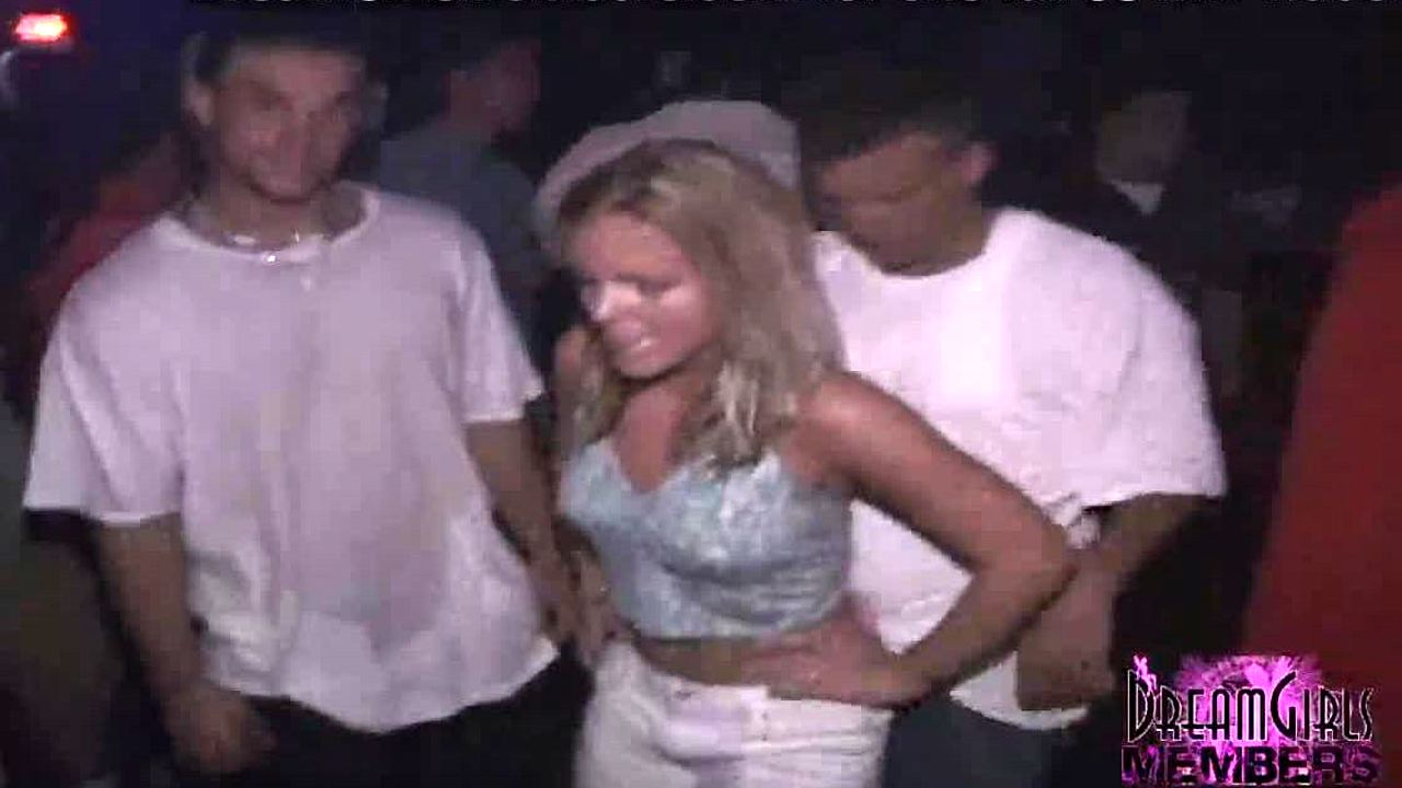 Spring break club flashing in night club outdoor setting.