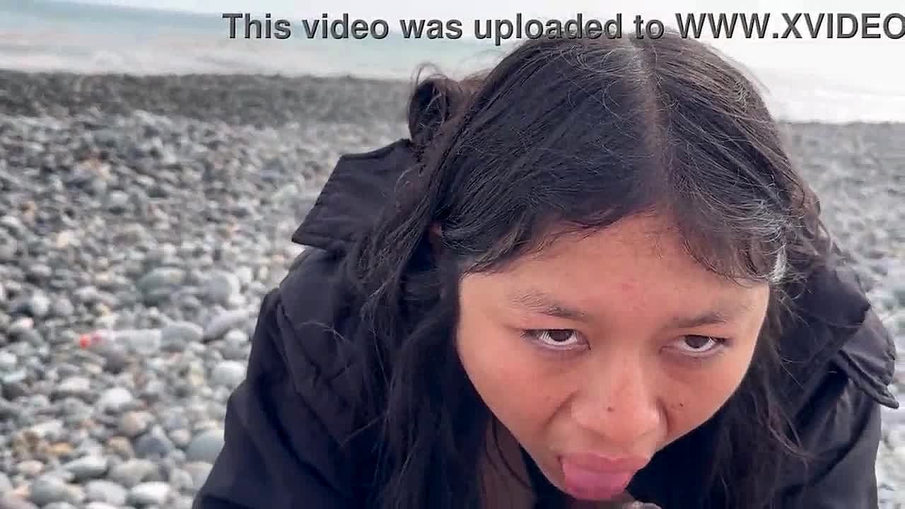 asian metis whore banged hard by muscle man with huge cock on beach