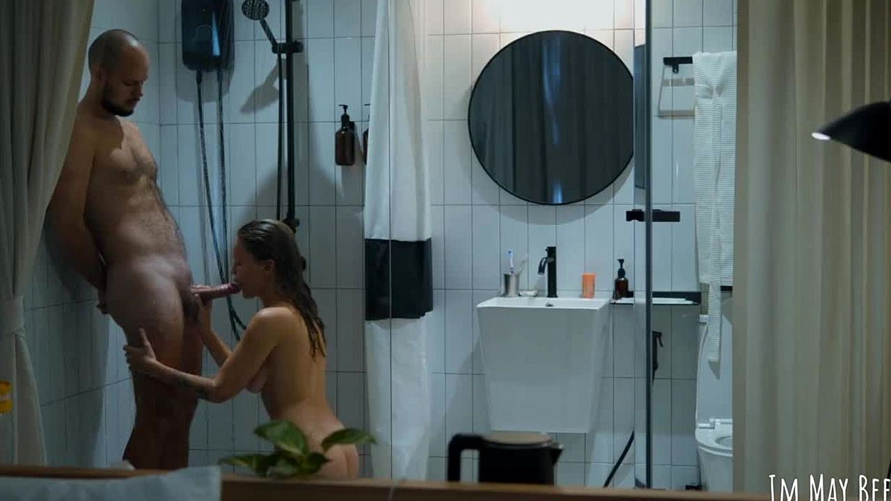 Passionate hard sex with huge fake tits roommate in bath