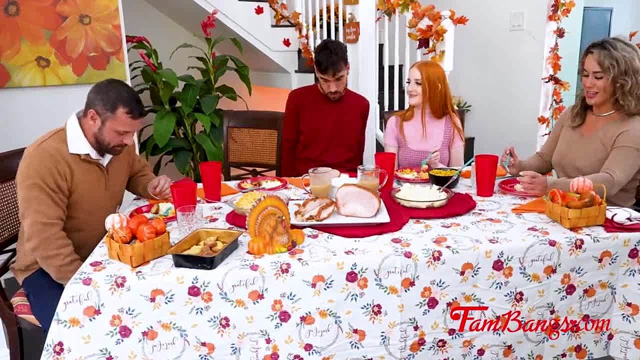 Step Family Spending Thanksgiving Together in Taboo Porn with Daddy and Mommy Fucking!