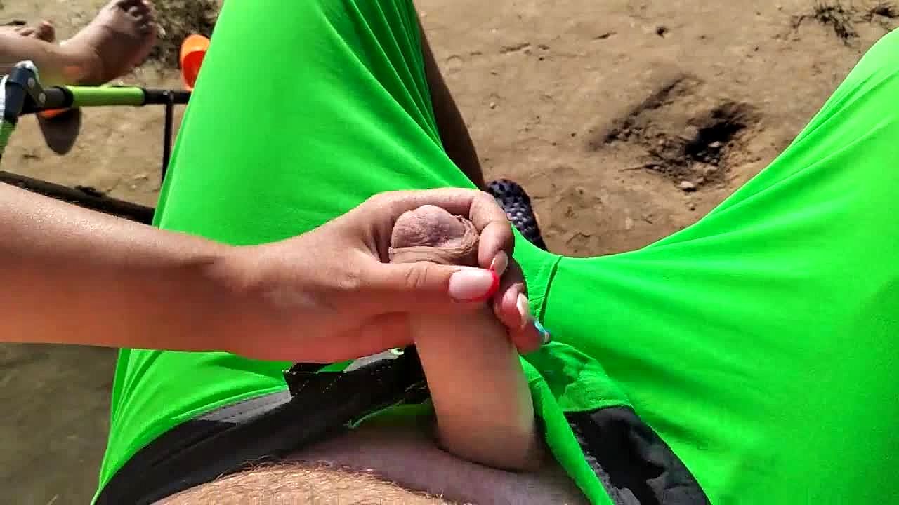 French teacher amateur handjob on public beach with cumshot extreme sex in front of strangers - misscreamy