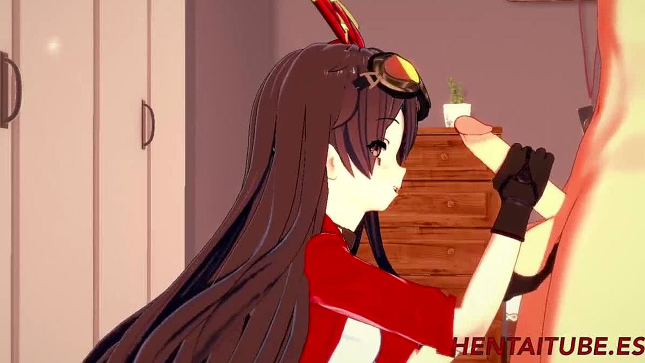 Genshin hentai: Lumine blows Razor!