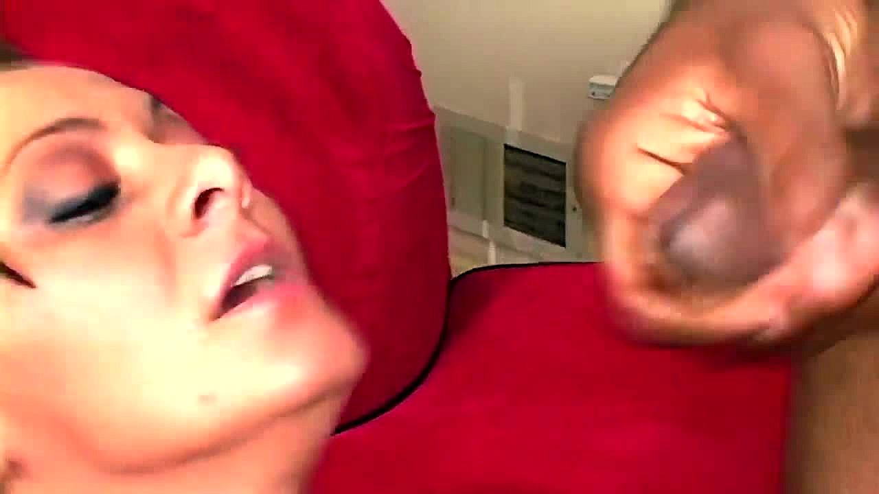 Hot brunette with stunning natural tits goes wild with interracial BBC action