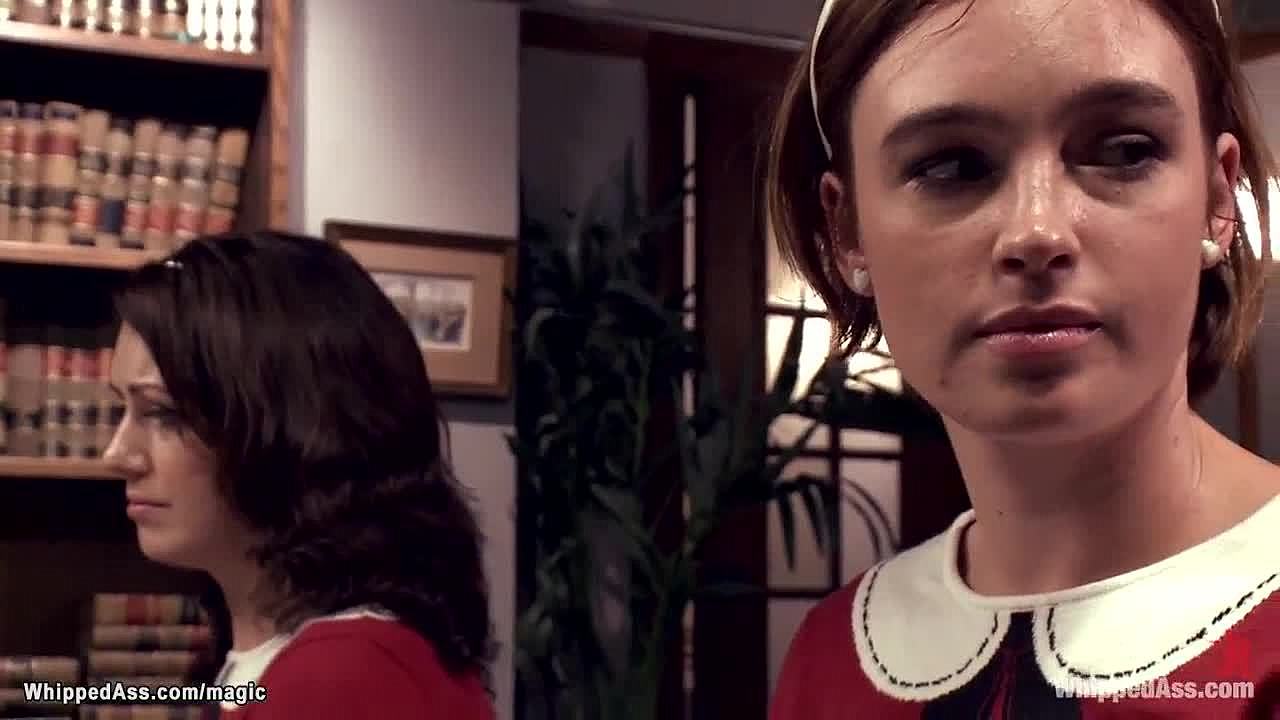 Redhead Lesbian Butt Whipped and Banged in Group Bondage Session