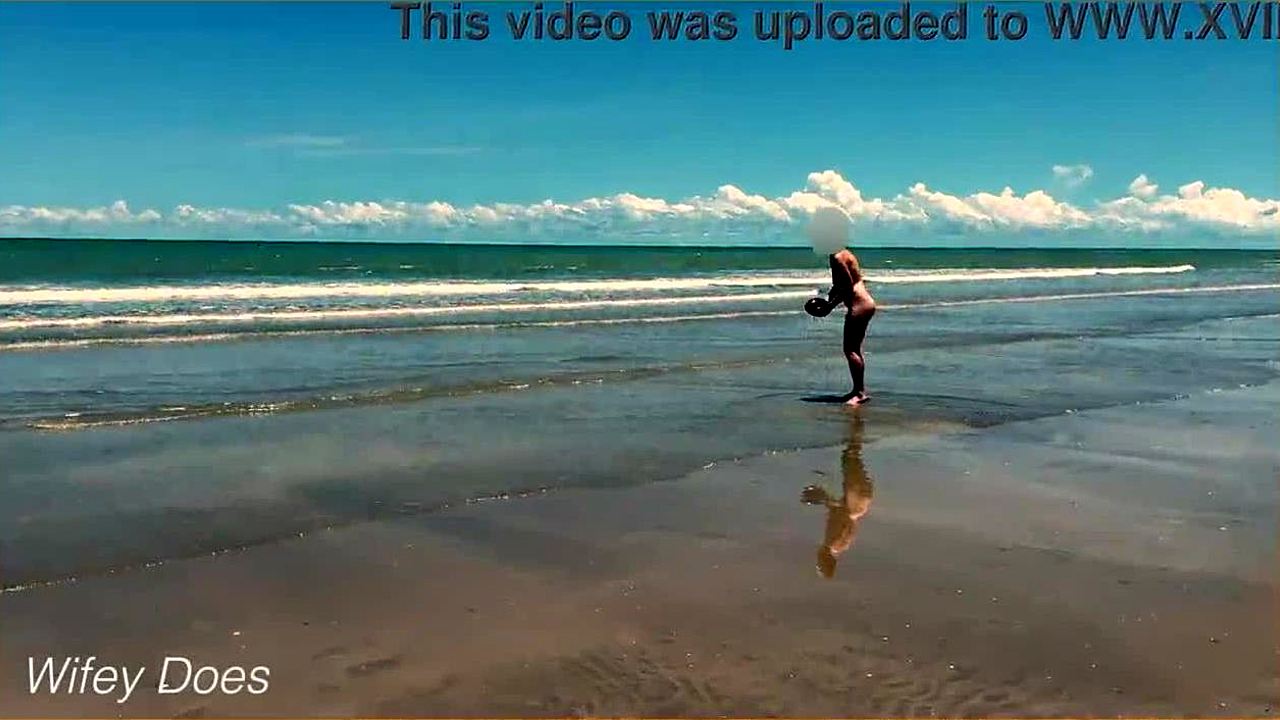 Wife dares to play nude football on a public clothed beach