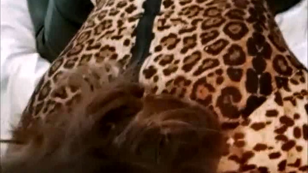 amateur slut in zebra satin corset and white panties gets doggy blowjob pov ass licking